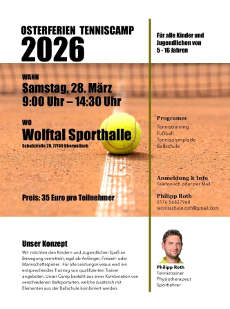 Bei strahlendem Sommerwetter veranstaltete Tennistrainer Philipp Roth am 11. und 12. August ein zweitägiges Tenniscamp für Kinder auf der Platzanlage des Tennisclub Oberwolfach im Ortsteil Walke. Das Camp war mit rund 24 Kindern im Alter von 7 bis 13 Jahren vollständig ausgebucht.